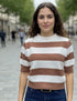 Blusa de manga corta con diseño de rayas horizontales. Presenta cuello redondo acanalado, así como manga y pretina también acanalados, ofreciendo un ajuste cómodo y definido. Larga hasta la altura de la cintura. Confeccionada en punto tejido, de textura ligeramente granulada.