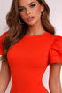 Body de manga corta, confeccionado en tela que se ajusta al cuerpo resaltando la silueta. Presenta cuello redondo que aporta un estilo limpio. Sus mangas cortas con doble volante añaden un toque delicado y femenino, creando movimiento y volumen en los hombros. Tiene broches en la parte final para abrochar. La tela estira muy poco. Corre muy justo.