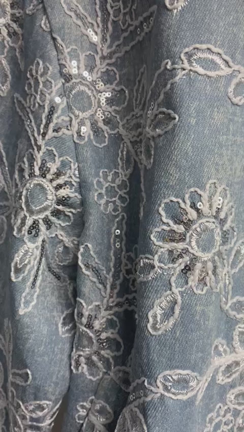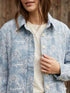 Chamarra corta con bordado floral en color blanco que cubre toda la prenda, que combina un estilo casual con un toque femenino y delicado. Cuenta con cuello tipo camisero, cierre frontal con botones claros y mangas largos con puño y con botón, que brinda un ajuste cómodo. Corte recto y ligeramente amplio. Es una prenda versátil y llamativa ideal para cualquier temporada.