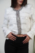 saco corto con detalles de pedrería en solapa y cuello, corre en su talla.